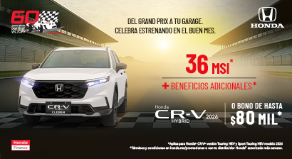 36 meses sin intereses en la compra de una Honda® CR-V® en versión TOURING HEV y SPORT TOURING HEV