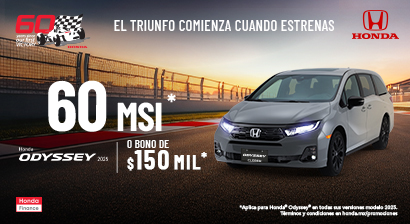60 meses sin intereses en la compra de una Honda® Odyssey® versión TOURING y BLACK EDITION modelo 2025,