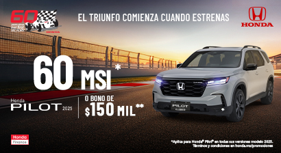 de $150,000 aplica en la compra de un Honda® ODYSSEY® en versión TOURING y BLACK EDITION modelo 2025.