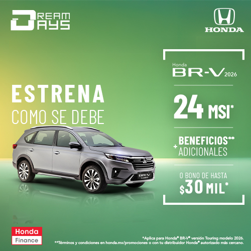 Honda® BR-V® 2025 BONO DE HASTA $30,000 Vigencia del 1 al 30 de abril de 2026 o hasta agotar existencia lo que suceda primero. Bono flexible de $30,000 aplica en la compra de un Honda® BR-V® en versión TOURING modelo 2026. El bono no aplica con otras promociones.