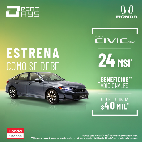 Honda CIVIC® 2026 BONO DE HASTA $40,000 Vigencia del 1 al 30 de abril de 2026 o hasta agotar existencia lo que suceda primero. Bono flexible de $40,000 aplica en la compra de un Honda CIVIC® en versión i-STYLE modelo 2026. El bono no aplica con otras promociones.