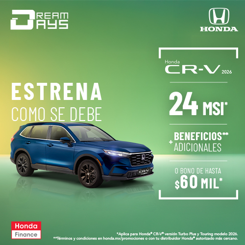 Honda® CR-V® 2026 BONO DE HASTA $60,000 Vigencia del 1 al 30 de abril de 2026 o hasta agotar existencia lo que suceda primero. Bono flexible de $60,000 aplica en la compra de una Honda® CR-V® en versión TURBO PLUS y TOURING modelo 2026. El bono no aplica con otras promociones.