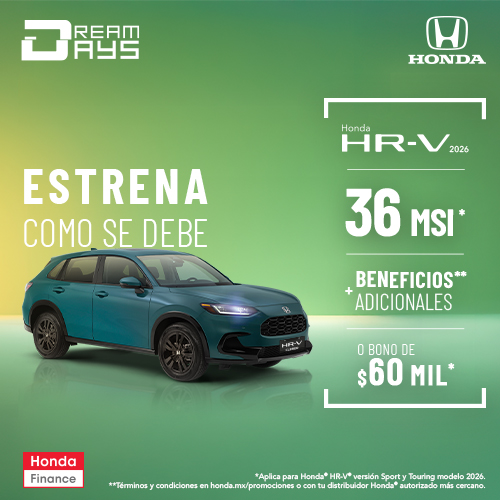 Honda® HR-V® 2026 BONO DE $60,000 Vigencia del 1 al 30 de abril de 2026 o hasta agotar existencia lo que suceda primero. Bono flexible de $60,000 aplica en la compra de un Honda® HR-V® en versiones SPORT y Touring modelo 2026. El bono no aplica con otras promociones.
